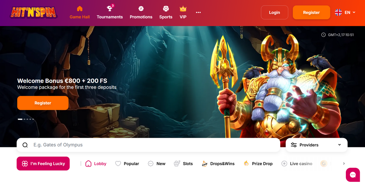 If the first exclusive upgraded Hitn.Spin bonus step is not completed within 60 minutes of registration, only the standard welcome bonus package will be available. With the standard welcome bonus package, you can receive up to €800+ 200 fs